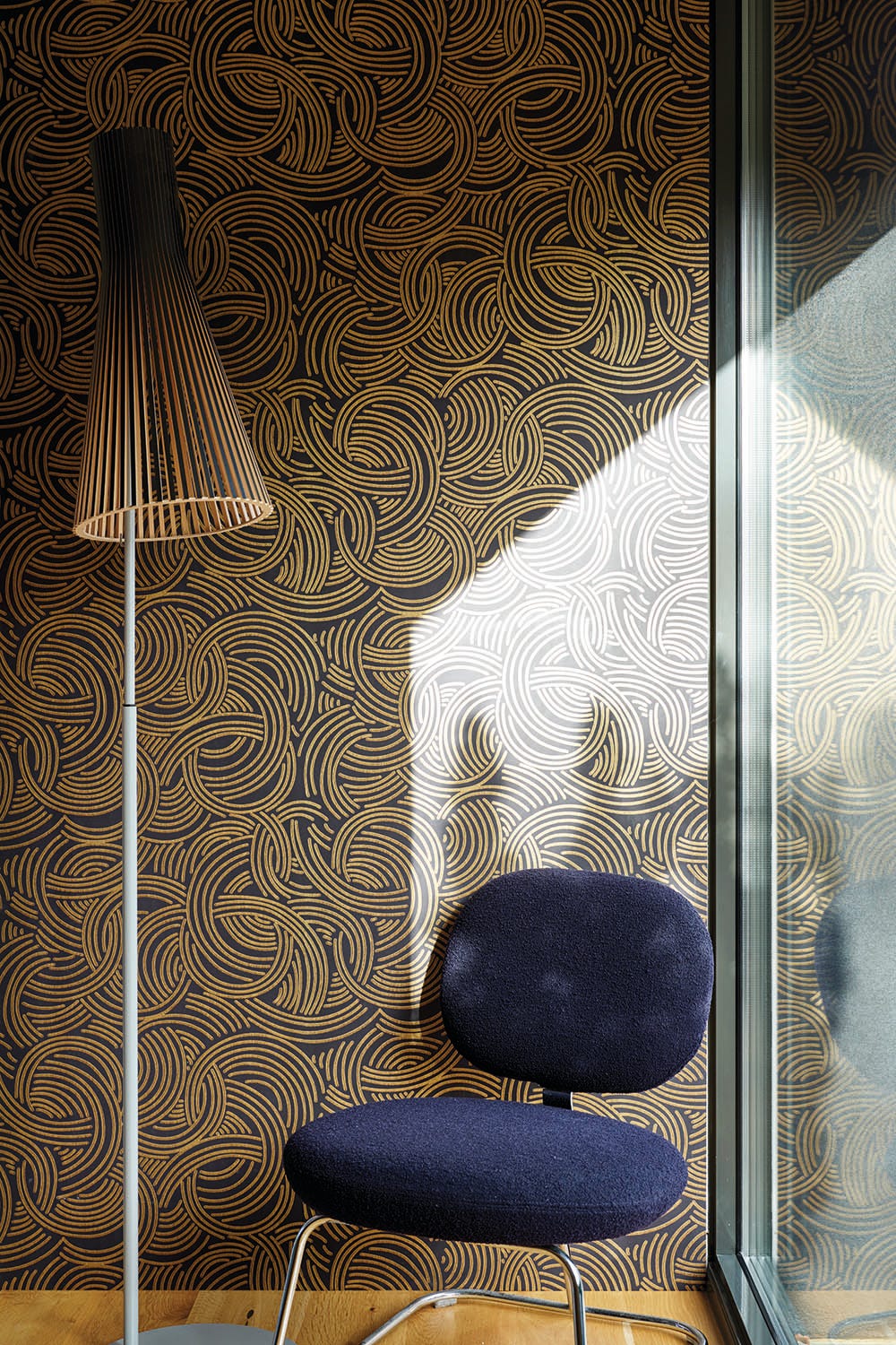 Tourbillon, taking its name from the French for ‘whirlwind’, is the perfect balance of energy and elegance. Its free-flowing print arcs and swoops across the paper, adding a feeling of movement to any wall.